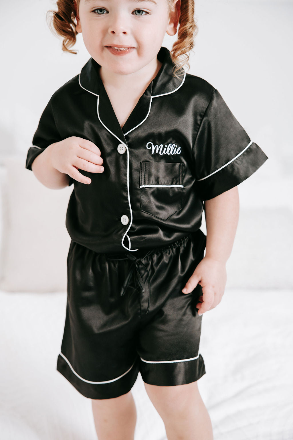 Luxe satin PJs, personalised with their name and made ready to gift. You pick the name. We’ll handle the rest.