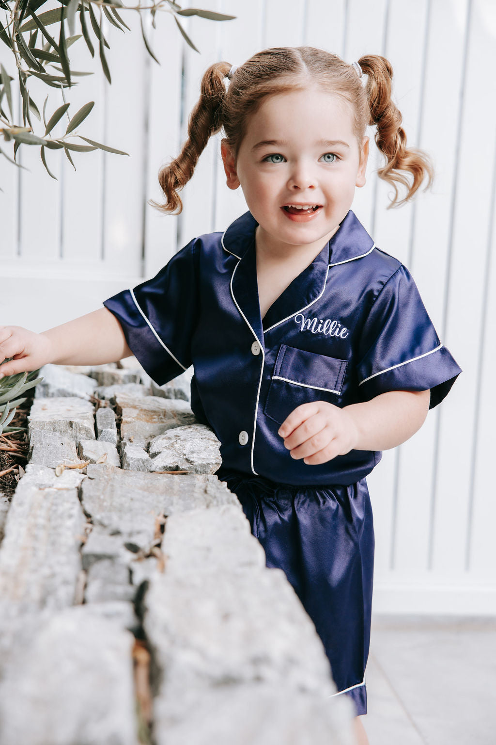 Luxe satin PJs, personalised with their name and made ready to gift. You pick the name. We’ll handle the rest.